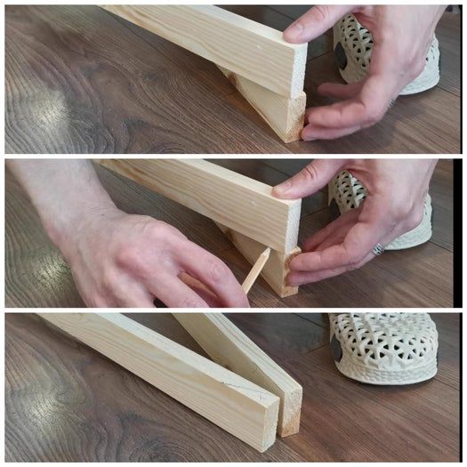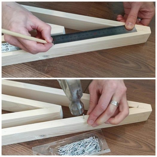 我在三角形底部设置了相同的斜角,然后用木工胶和钉子把木板固定在一起。
