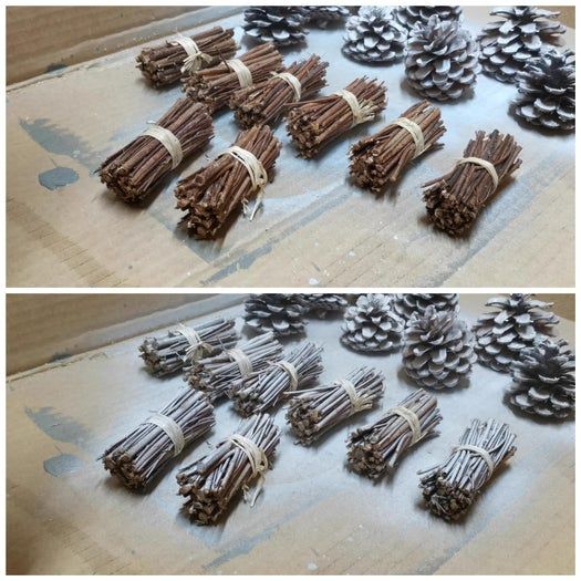 我们还决定给松果和小树枝刷上白漆,再用热熔胶粘上去,效果真的很棒!