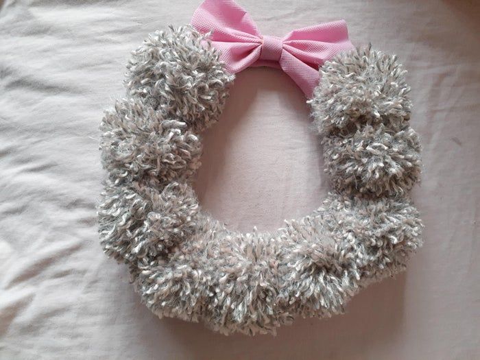 漂亮又蓬松的毛线球花环,可以用来做装饰品和礼物包装