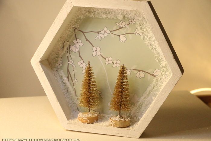 第二步:剪出形状并粘贴到木质六边形上