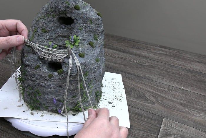 大家好,在这个教程中,我将展示如何为水泥喷泉制作绳索桥。使用纸板模板配合简易绳结即可完成桥体两侧的制作。