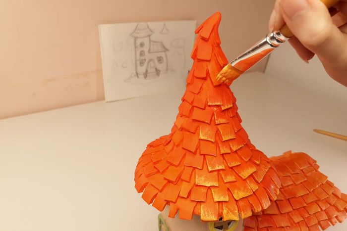 确保金属箔紧密贴合,否则后续覆盖粘土时可能开裂。精确裁切屋顶组件,仔细粘合确保结构稳固。