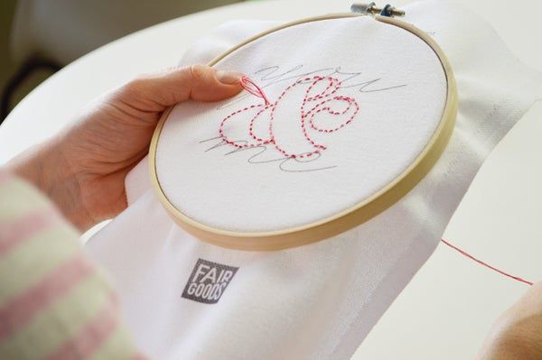 继续围绕图案刺绣,保持针脚间距均匀。如果线用完了,只需在背面打结,然后重复步骤一和二。