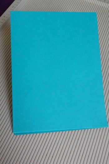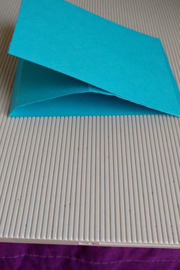 在卡纸上从边缘到6.4厘米的折痕处涂抹胶水。将第二片卡纸沿边缘对齐粘贴,确保10.5厘米的边相互对齐并牢固粘合。