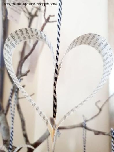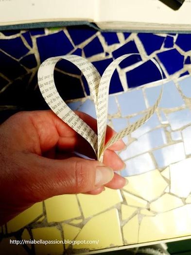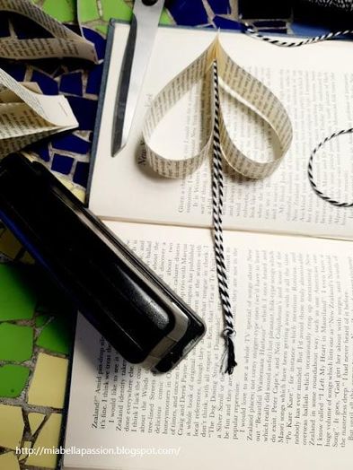 这些小爱心是用旧书纸条制作而成的,用订书机一订就成型啦。