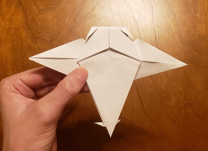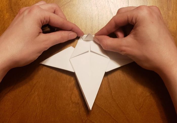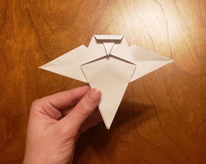要折翅膀的话,把里面的两个角一边向上提一边向前扭转,到位后压下去并折出痕迹。