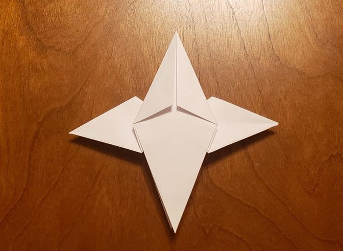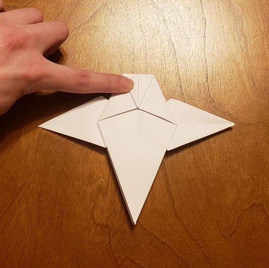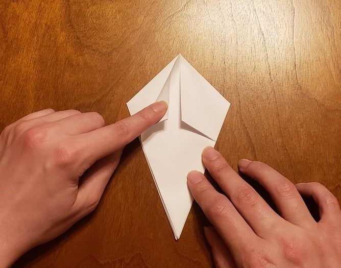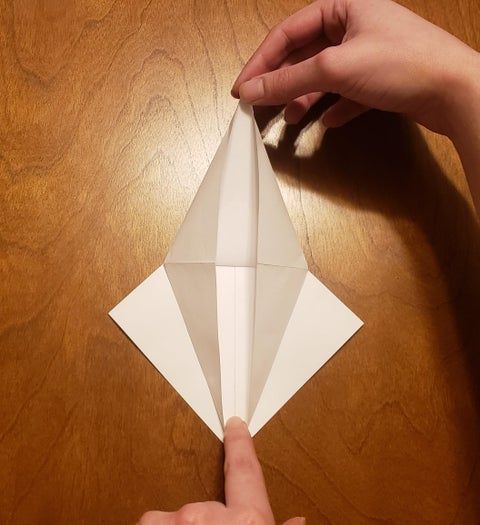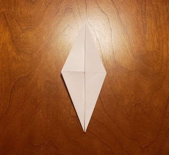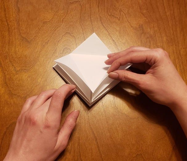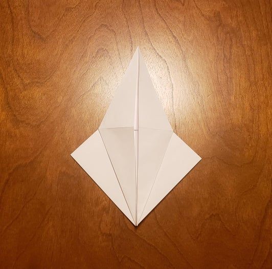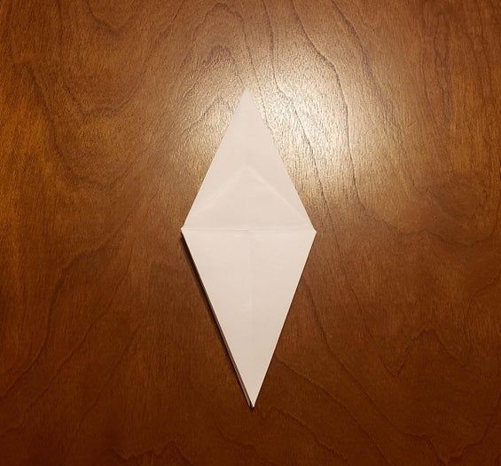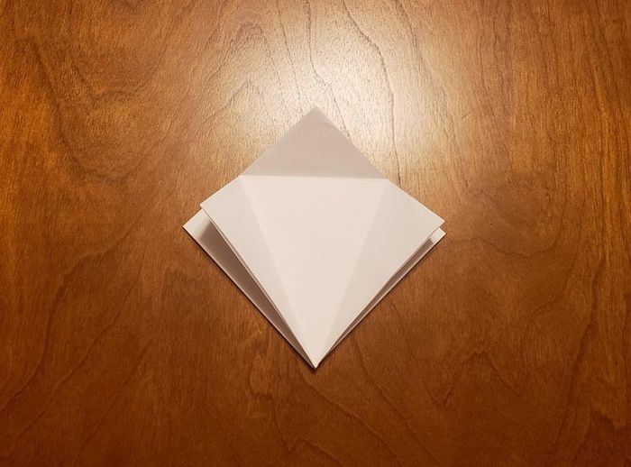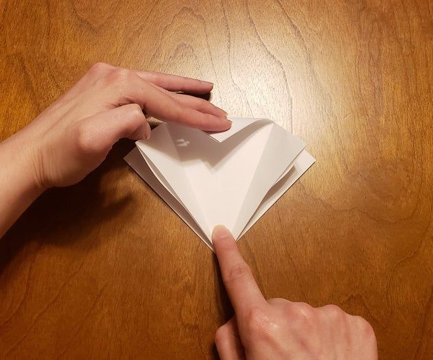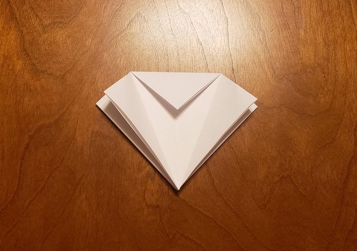 把顶部的角往下折,直到尖端碰到中心处纸片的底部。
