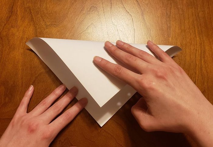 把最上面那层纸往下折,然后翻个面重复一遍这个动作。