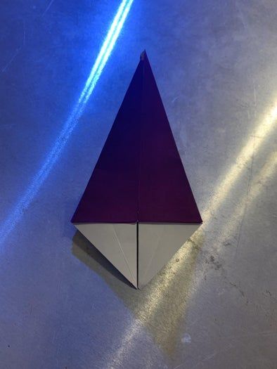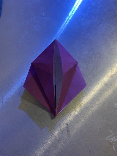 - 用手指插入纸张彩色部分下方,向上拉起并压平(和制作鸟基的方法相同)