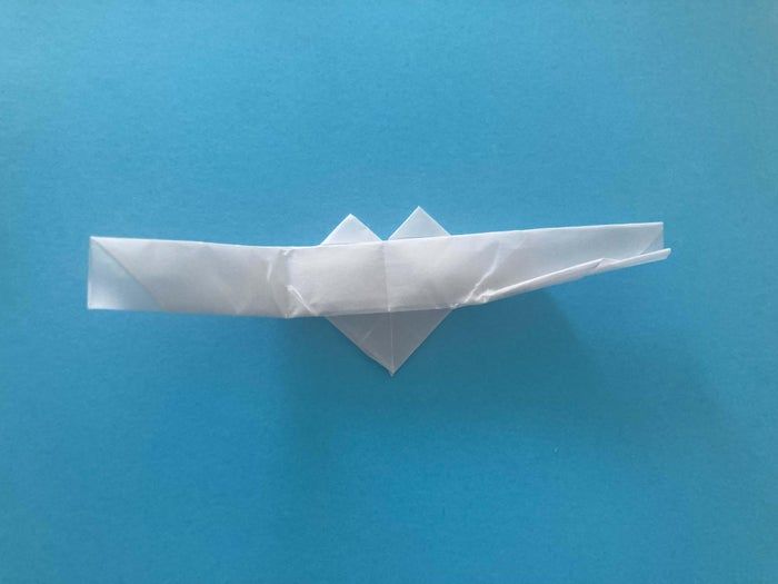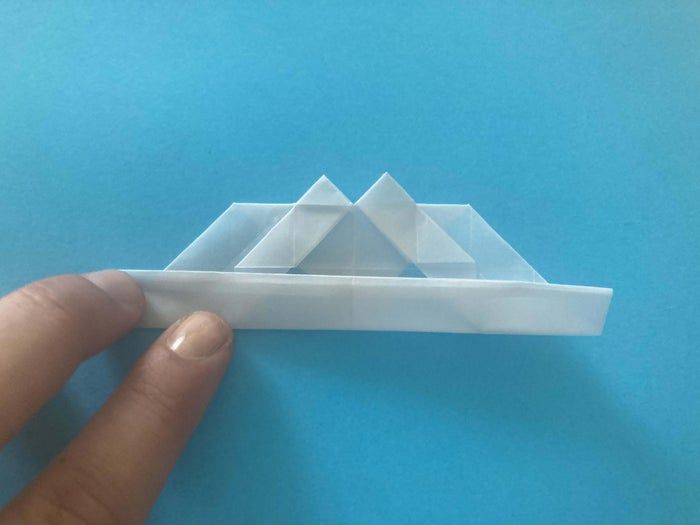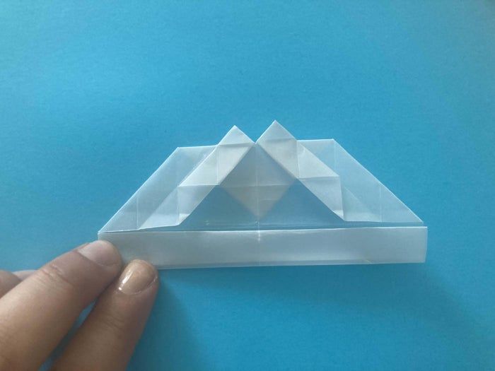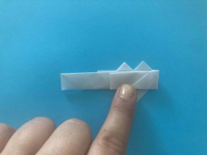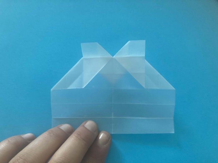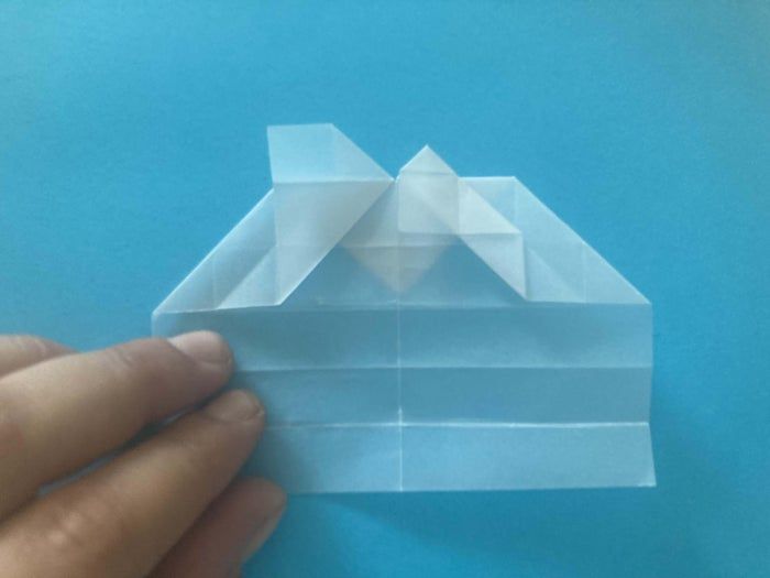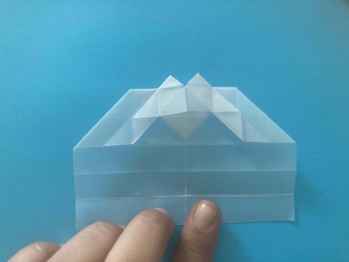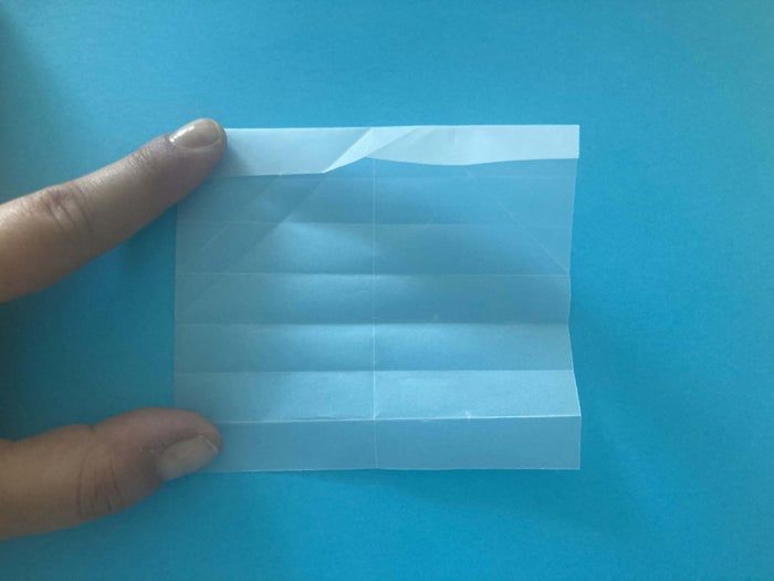 把最后一段横向的折痕往下折,然后翻转纸张。