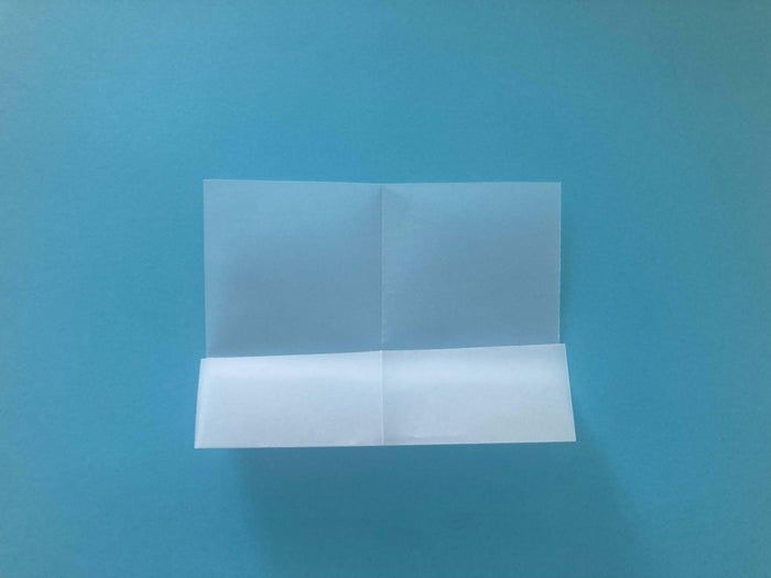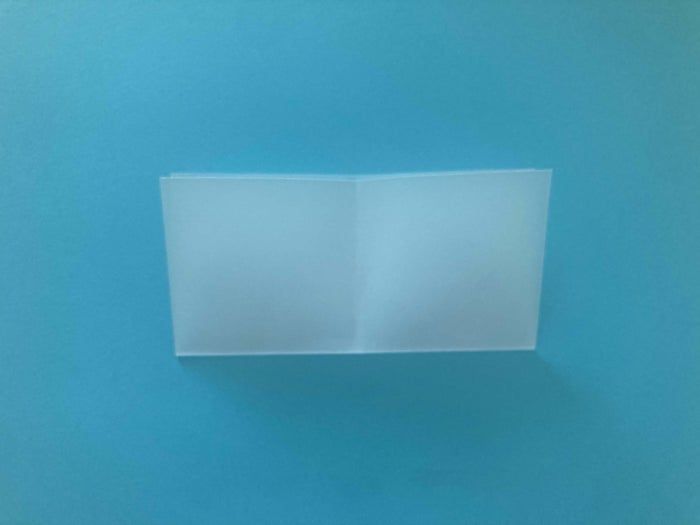 然后将纸向右旋转90度,再次对半折叠。这时候这张纸已经被折叠了两次。