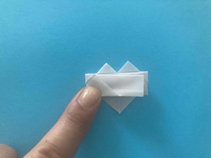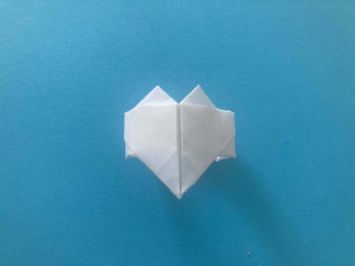 将底部边缘往上折一步,然后重复三次这样的动作,这时候你应该能看见一个心形啦。
