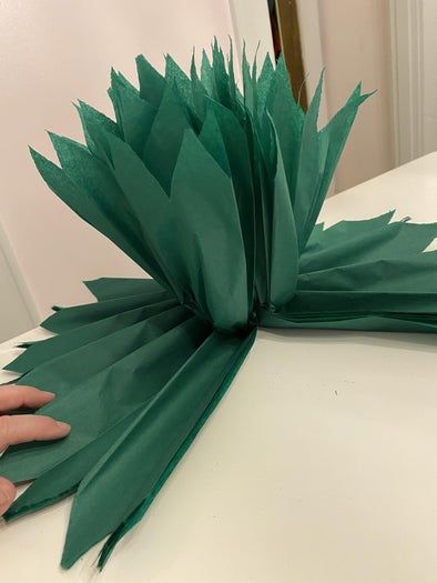 最有趣的部分来了!魔法就在这里发生!把你的“扇子”打开,小心地(真的是要特别小心)把每一张纸轻轻分开,慢慢往上提。记得从绳子的一边均匀地做到另一边,这样你的植物才会看起来对称美观。