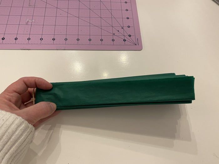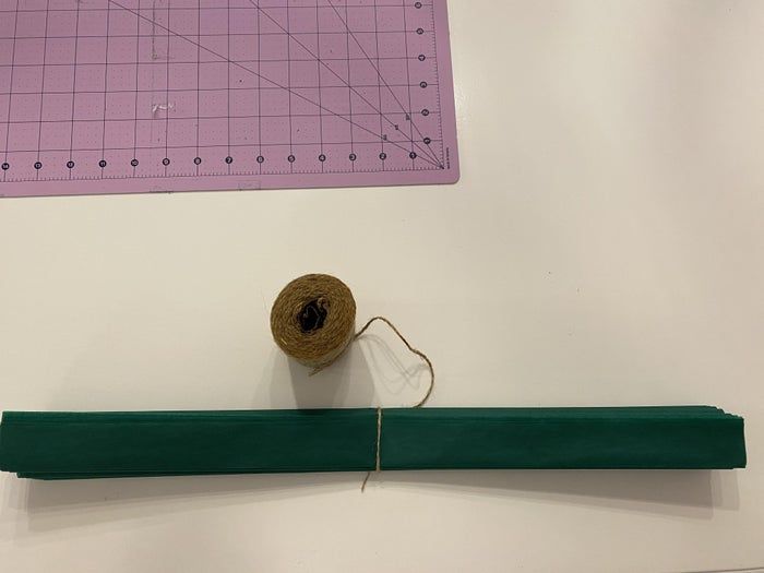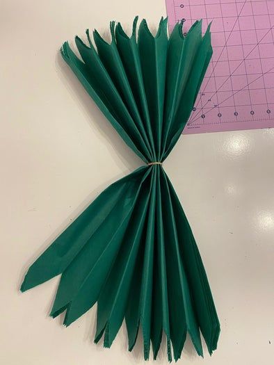 接下来,将纸巾像手风琴一样反复折叠,然后用绳子在中间绑起来。之后再整个对折一下就行了。