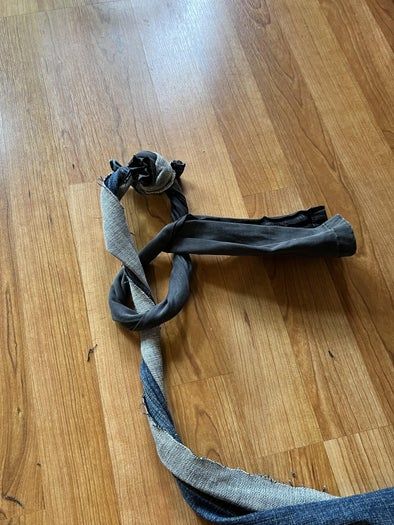 - 将两条单独的牛仔条两端打结连接起来