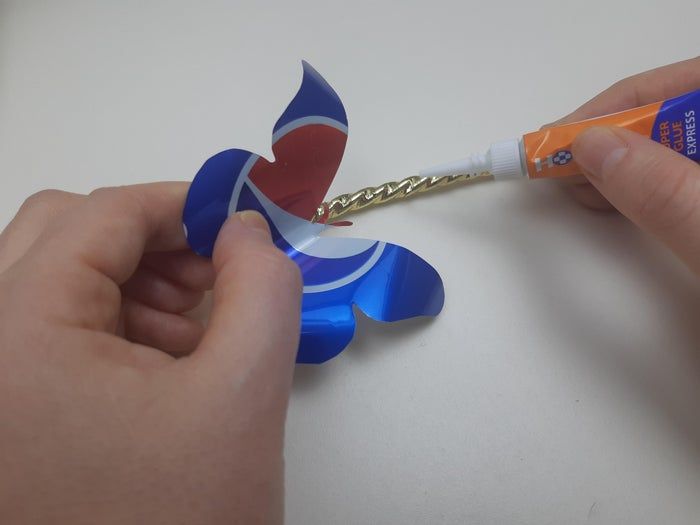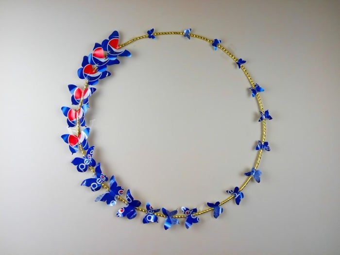 要做这些蝴蝶,我们需要六个空的铝罐(百事可乐的那种),还需要一段废旧的电线和金色丝带用来包装礼物。
