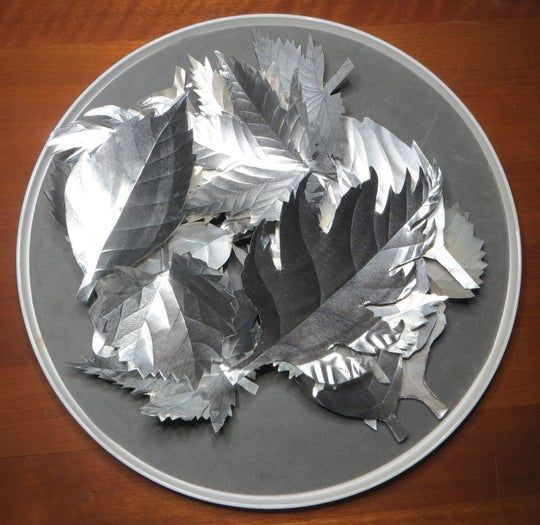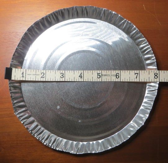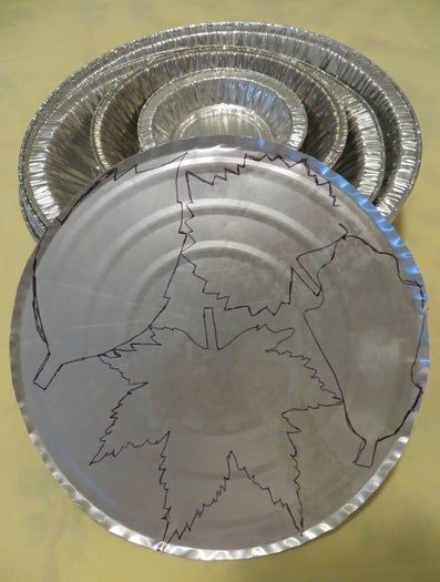 接下来,你需要仔细地将铝制饼盘剪成至少20厘米直径的区域。用木棒把铝片表面弄平整。