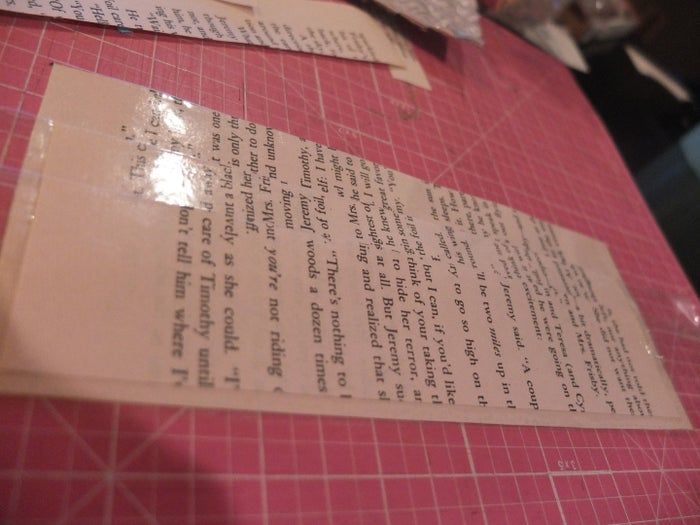 最后,我开始将钱包的两部分连接起来。我切了一些1.9厘米宽的条带,然后用包装胶带覆盖其中一面。我留出了约0.6厘米的边缘用于固定到钱包上。