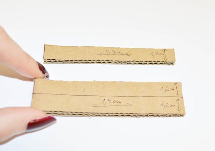 做楼梯的话,剪两块瓦楞纸板,每块大概9.4厘米宽。