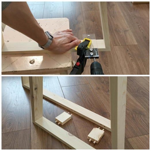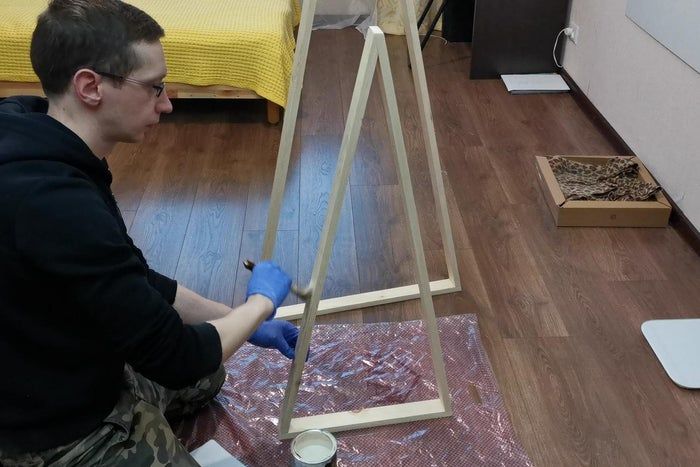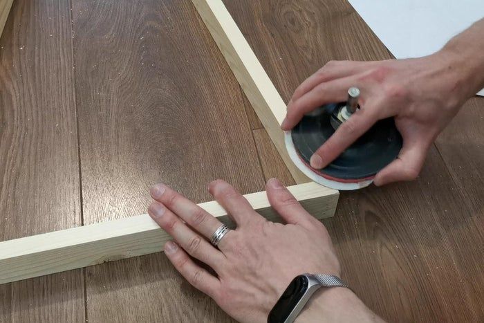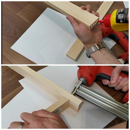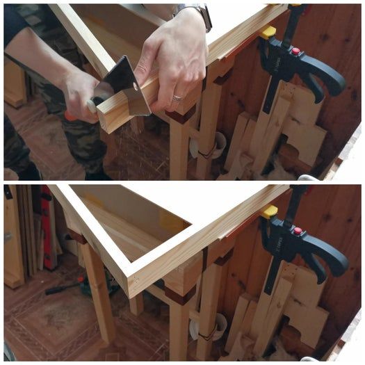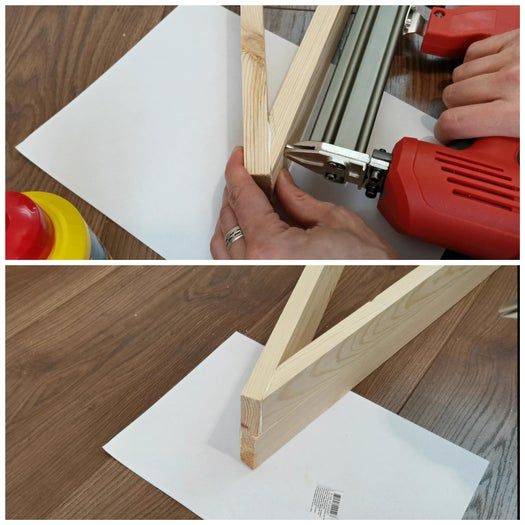 我在三角形底部设置了相同的斜角,然后用木工胶和钉子把木板固定在一起。