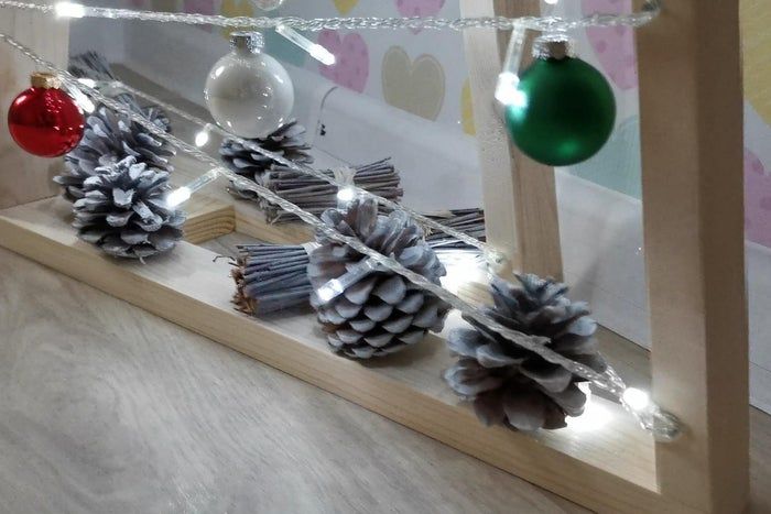 我们还决定给松果和小树枝刷上白漆,再用热熔胶粘上去,效果真的很棒!
