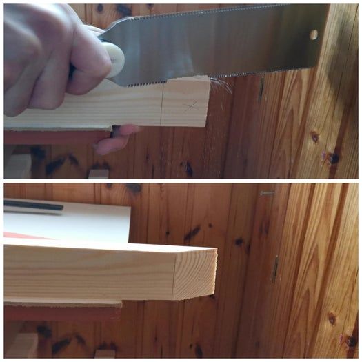 我用日式手锯把边角料切掉,最后得到了两个漂亮的三角形。