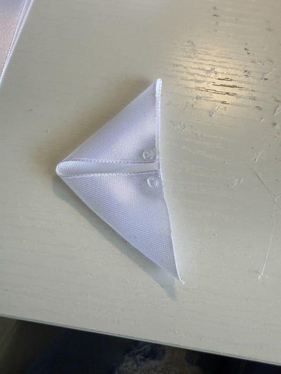 在顶部两个角上涂上热熔胶,然后把这两个角向内折叠