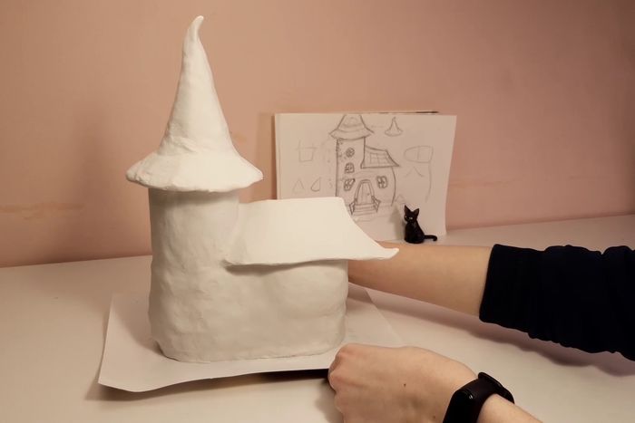 确保金属箔紧密贴合,否则后续覆盖粘土时可能开裂。精确裁切屋顶组件,仔细粘合确保结构稳固。