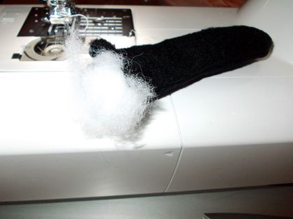 将四肢翻到正面并用聚酯纤维填满,留下大约一厘米未填满的空间在开口处。