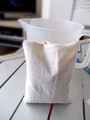 将棉布袋翻到正面并填满你选择的干“谷物”。缝合袋子并准备好放入微波炉。