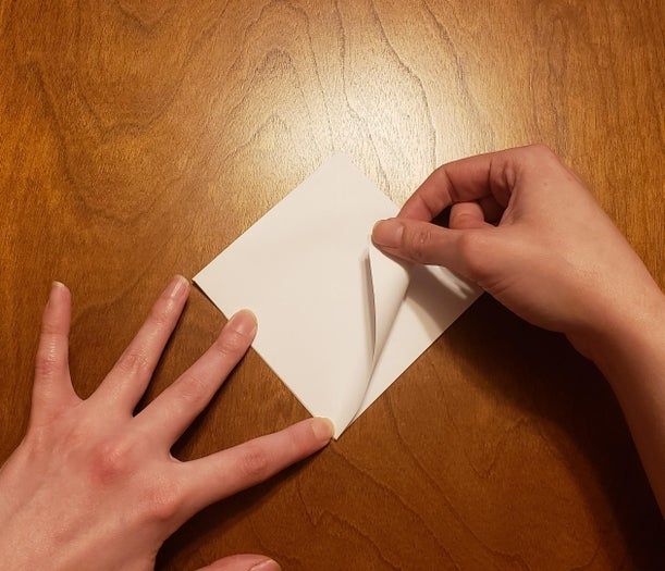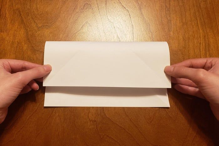 把最上面那层纸往下折,然后翻个面重复一遍这个动作。