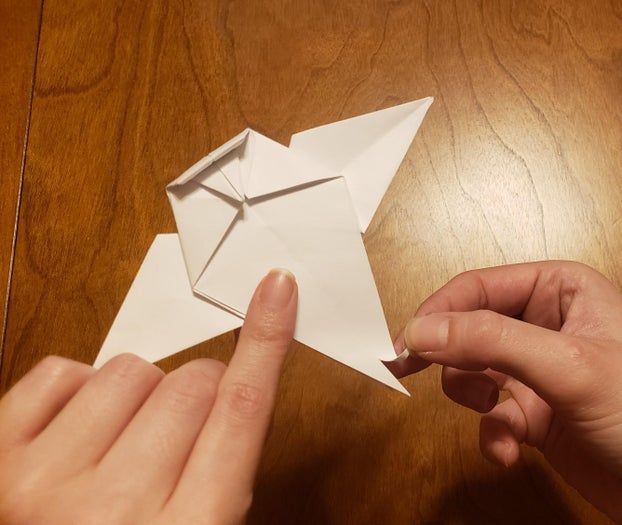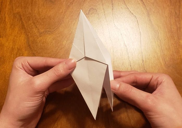 要折翅膀的话,把里面的两个角一边向上提一边向前扭转,到位后压下去并折出痕迹。