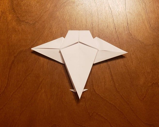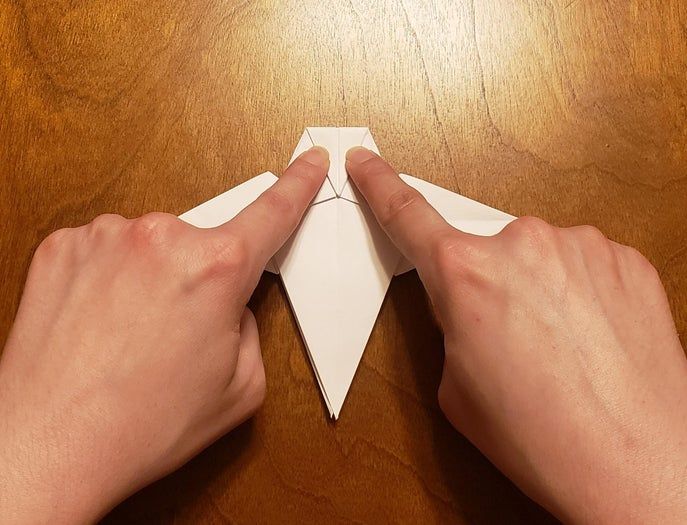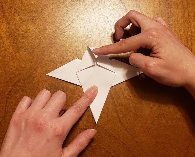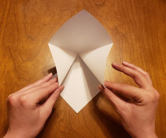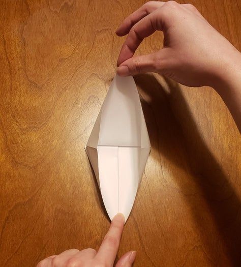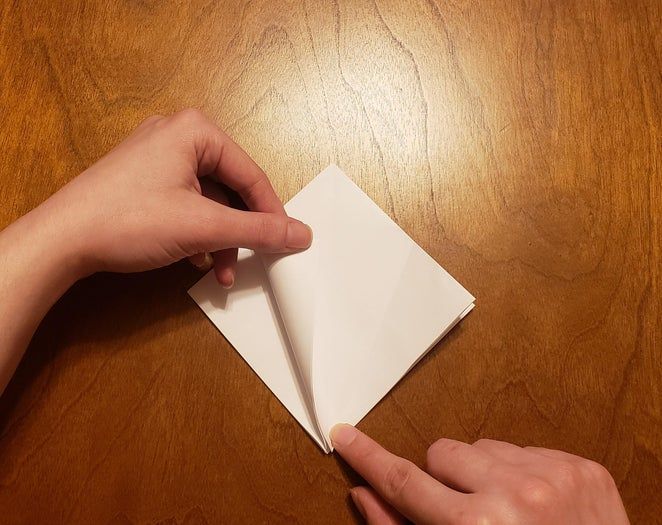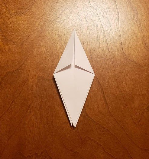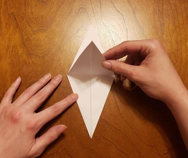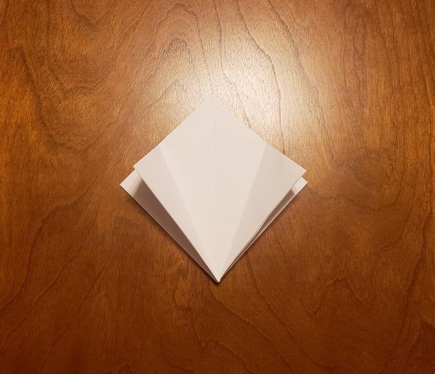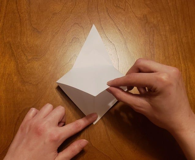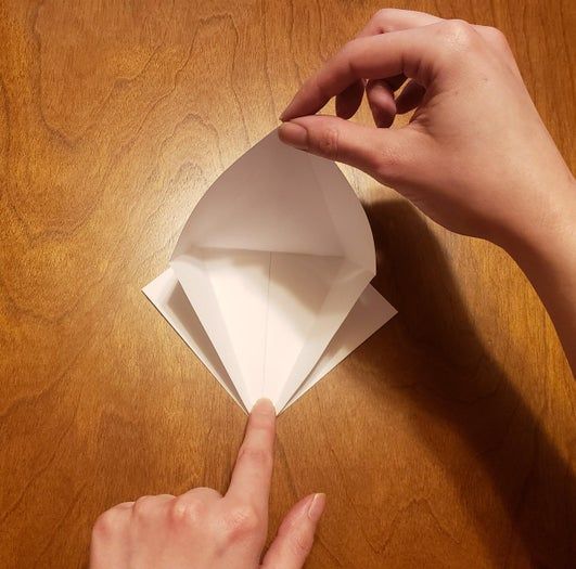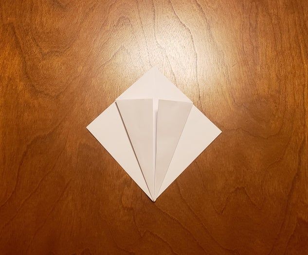 把顶部的角往下折,直到尖端碰到中心处纸片的底部。