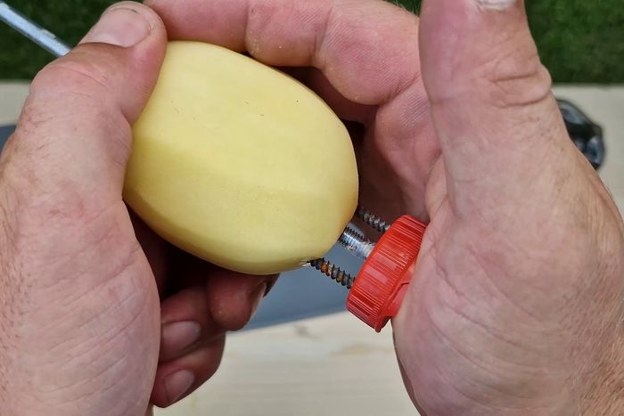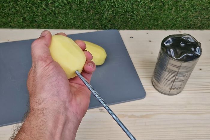然后把长的一端磨尖,以便能够轻松插入土豆。