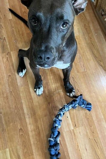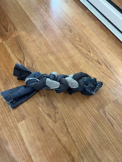 我家狗狗没有玩具玩的时候总是闷闷不乐。于是我用我旧牛仔裤重新改造,给她做了一个耐用的狗玩具!
