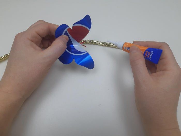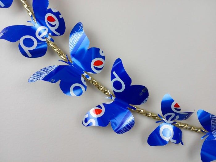 要做这些蝴蝶,我们需要六个空的铝罐(百事可乐的那种),还需要一段废旧的电线和金色丝带用来包装礼物。
