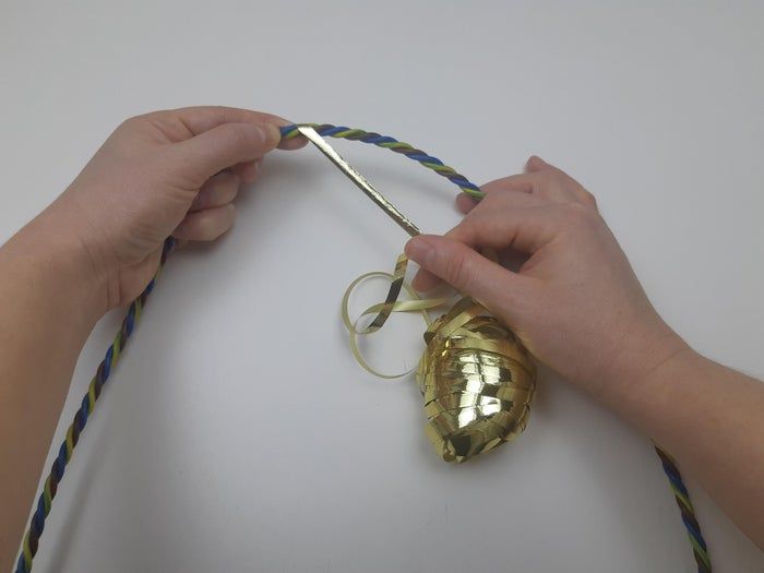 然后用金色丝带把整个电线包裹起来。